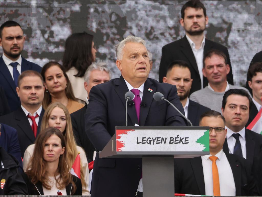 10月23日,匈牙利總理歐爾班在首都布達佩斯舉行的一場集會上講話。新華社發(fā)(弗爾季·奧蒂洛攝)