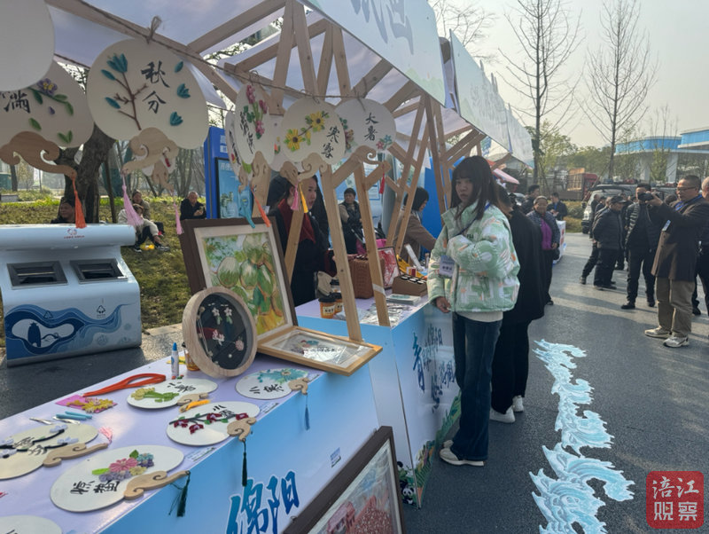 啟動儀式外,鄉(xiāng)村旅游嘉年華體驗區(qū)人頭攢動。剪紙攤前,一襲傳統(tǒng)服飾的女士靜守著滿架紅艷,風來,剪紙上的熊貓、人物悄然輕曳,游客舉起“熊貓抱竹”,笑嘆“比照片鮮活多了”;葫蘆攤前,一位男士摩挲著刻有“錦繡天府”的大葫蘆,“烙畫、漆藝”橫幅下,木雕師傅正打磨“綠繞天府”主題木雕。