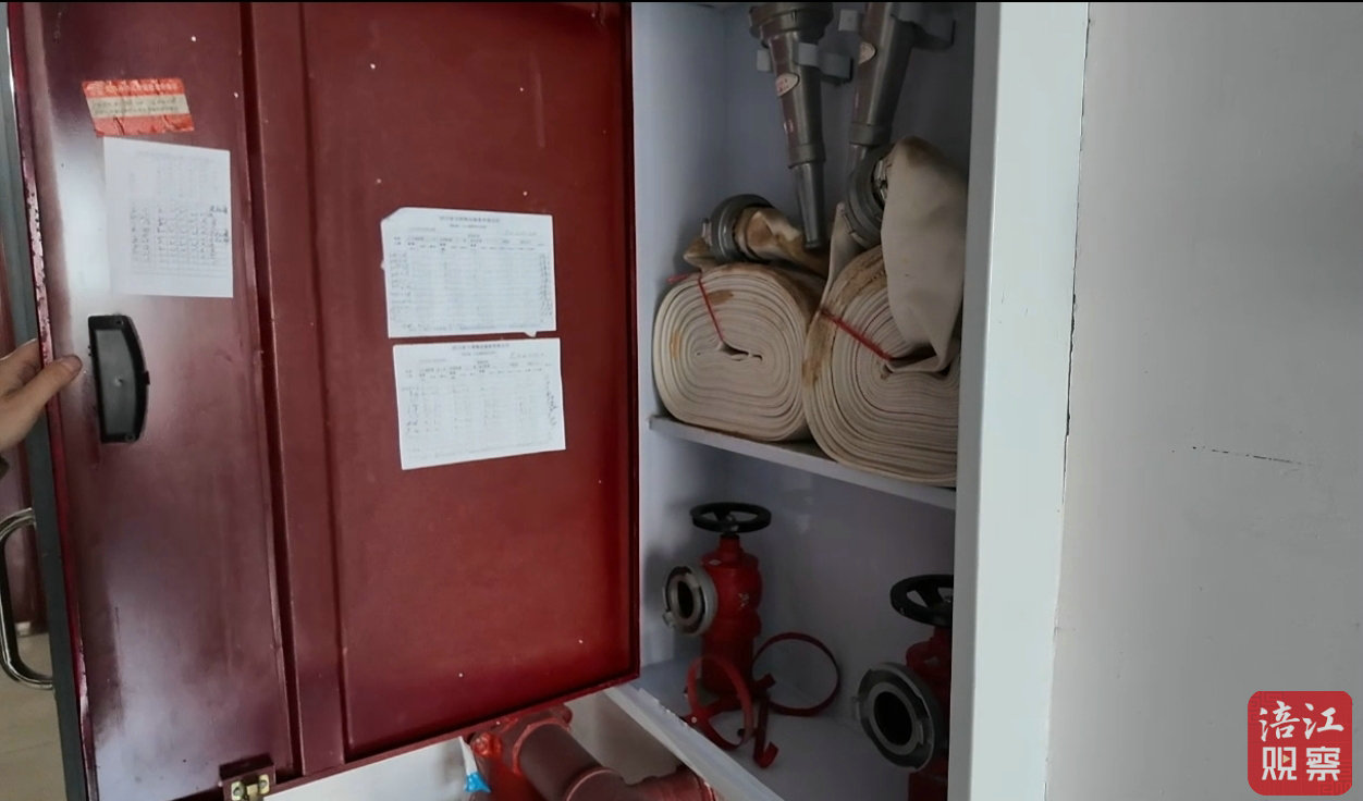 記者實地查驗發(fā)現(xiàn),該小區(qū)消火栓內(nèi)的消防水管嶄新,無使用痕跡,打開后卻沒有水流。而消火栓上張貼的物業(yè)巡查臺賬顯示,早在2023年,該問題已被標注。