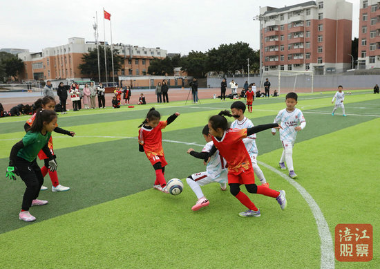 綿陽(yáng)新聞網(wǎng)訊 12月20日,在綿陽(yáng)南山中學(xué)雙語(yǔ)學(xué)校的綠茵場(chǎng)上 ,江油女足與綿陽(yáng)南山中學(xué)雙語(yǔ)學(xué)校足球隊(duì)舉行了一場(chǎng)公益足球賽,雙方球員在球場(chǎng)上奮力拼搏。
