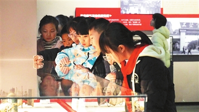 學(xué)生認(rèn)真參觀展館內(nèi)的展品。記者 劉曉東 攝