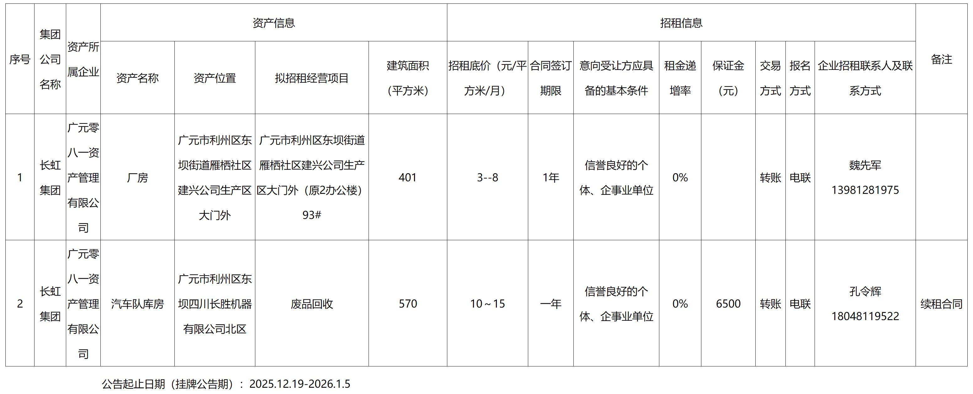 廣元零八一資產(chǎn)管理有限公司企業(yè)資產(chǎn)出租公告