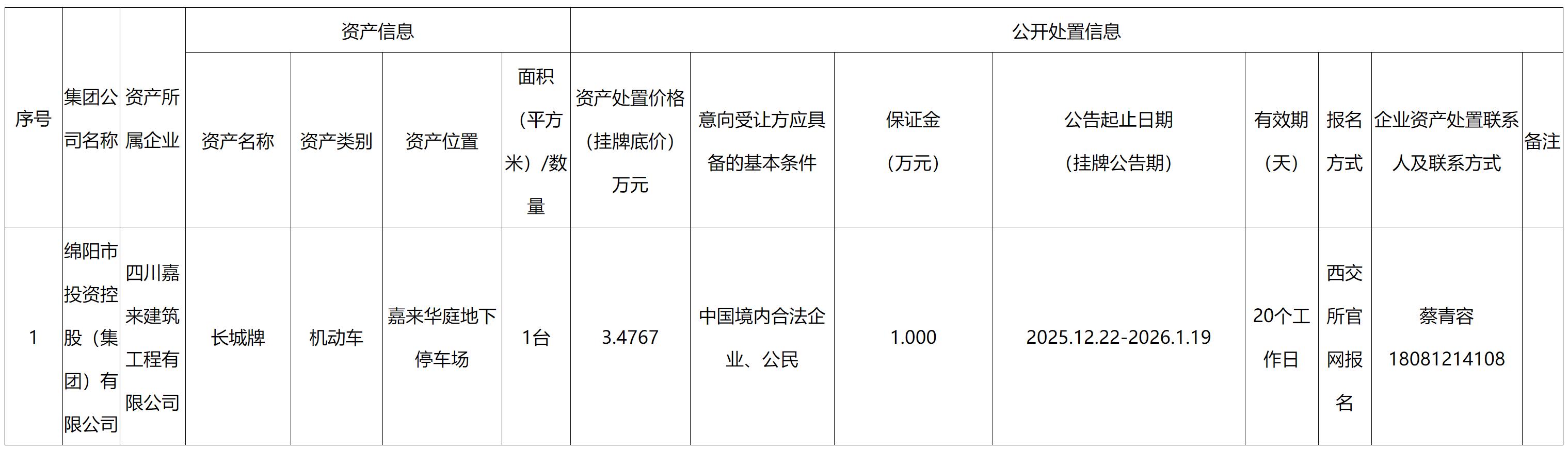 四川嘉來建筑工程有限公司資產(chǎn)處置公告