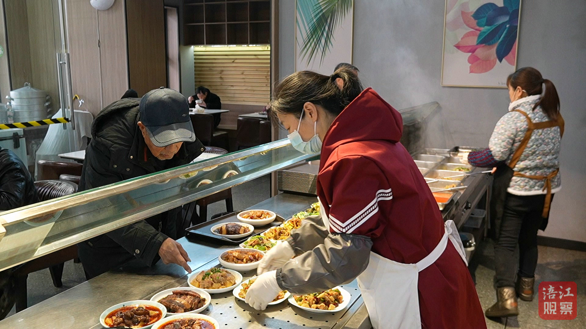 “我們家就在附近,走路5分鐘。以前買菜做飯很麻煩,現(xiàn)在有了幸福餐廳,我和老伴每天準(zhǔn)時來。”79歲的宋正華阿姨一邊說一邊笑著算起了賬,“你看,今天兩葷兩素四個菜,原價30多元,各種折扣后只要18元,味道好、軟糯可口,特別劃算。”