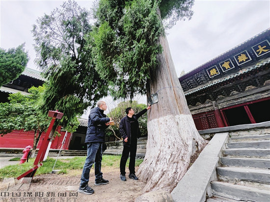 平武林草局工作人員對平武古樹進(jìn)行保護(hù)。