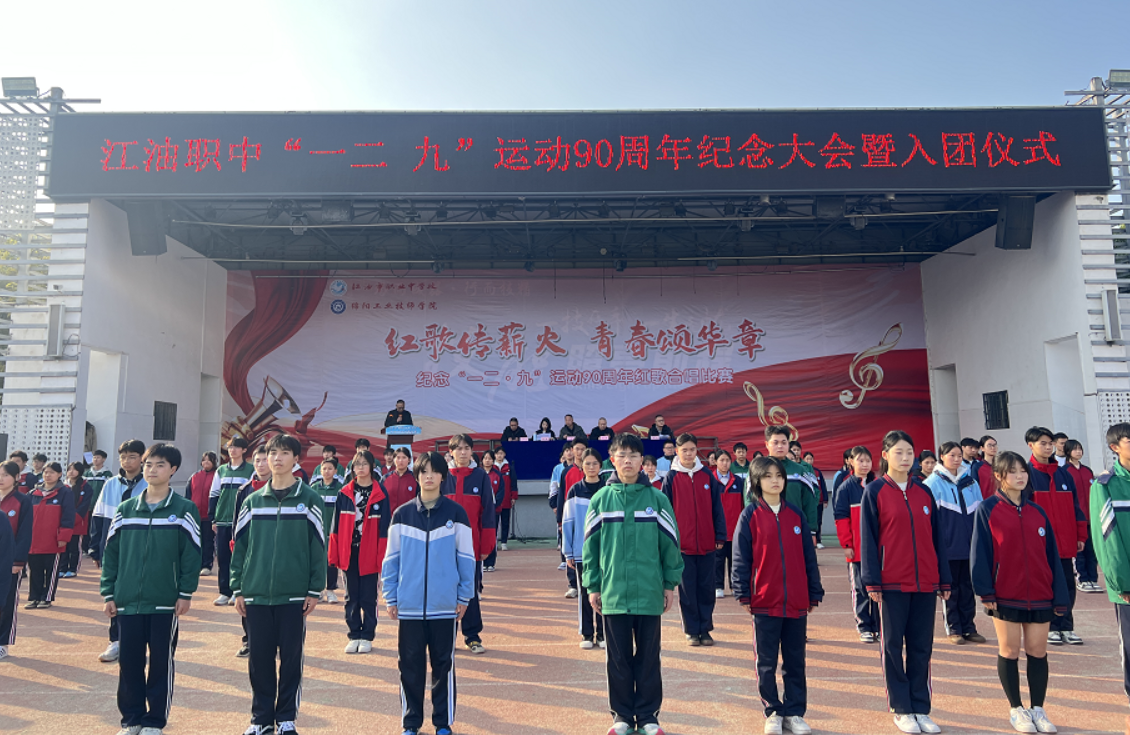 為了緬懷革命歷史、傳承愛國精神,引導(dǎo)青年學(xué)子勇?lián)鷷r(shí)代使命,12月10日,江油職中舉行了紀(jì)念“12·9”運(yùn)動90周年暨新團(tuán)員入團(tuán)儀式。該校黨委書記盧鴻亮、校長王勇等領(lǐng)導(dǎo)出席活動,全體師生共同見證這一莊嚴(yán)時(shí)刻。