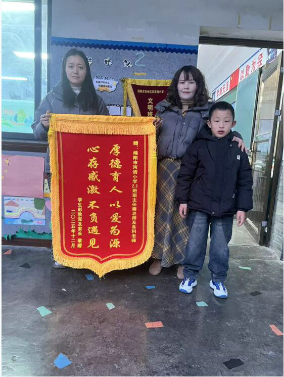 綿陽新聞網訊 近日,一面繡著“厚德育人,以愛為源,心存感激,不負遇見”的錦旗,由彭秋深同學家長專程送至安州區(qū)河清小學,贈予二⑶班班主任秦駿秋老師。這十六個熠熠生輝的金色大字,不僅承載著家長對老師的深厚謝意,更凝聚著一段以真誠溝通澆灌、以雙向理解培育的溫暖教育歷程。