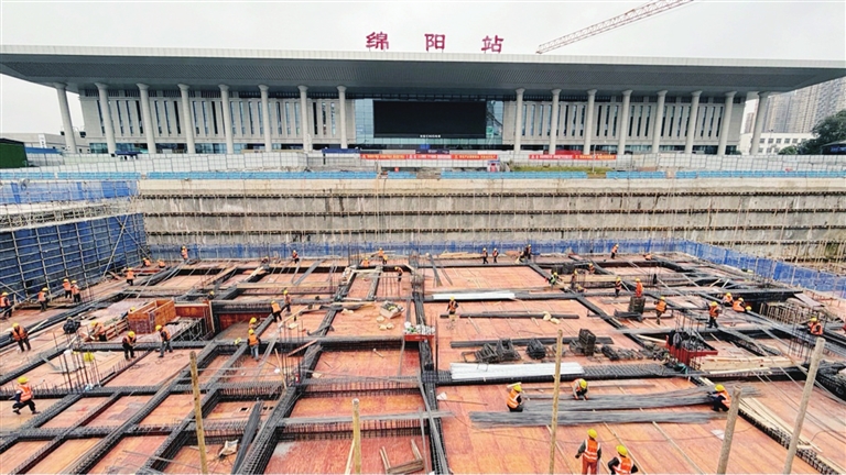 綿陽火車站站前廣場北側2區(qū)段主體結構順利封頂。 記者 唐韜 攝
