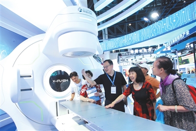 在第二十屆中國西部國際博覽會上,中玖閃光醫(yī)療研發(fā)的X-Flash放療設(shè)備受到關(guān)注。 視覺綿陽資料圖