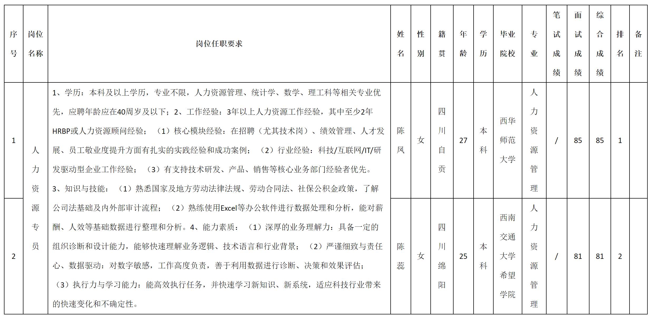 根據(jù)四川九洲投資控股集團有限公司軟件與數(shù)據(jù)智能軍團發(fā)布的招聘公告及招聘相關(guān)規(guī)定,現(xiàn)將測試成績予以公示。