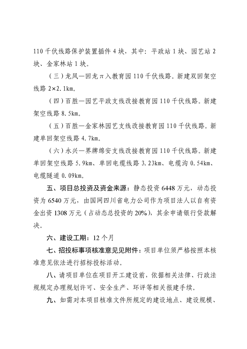 綿陽市發(fā)展和改革委員會關于綿陽教育園220千伏變電站110千伏配套送出工程項目核準的批復