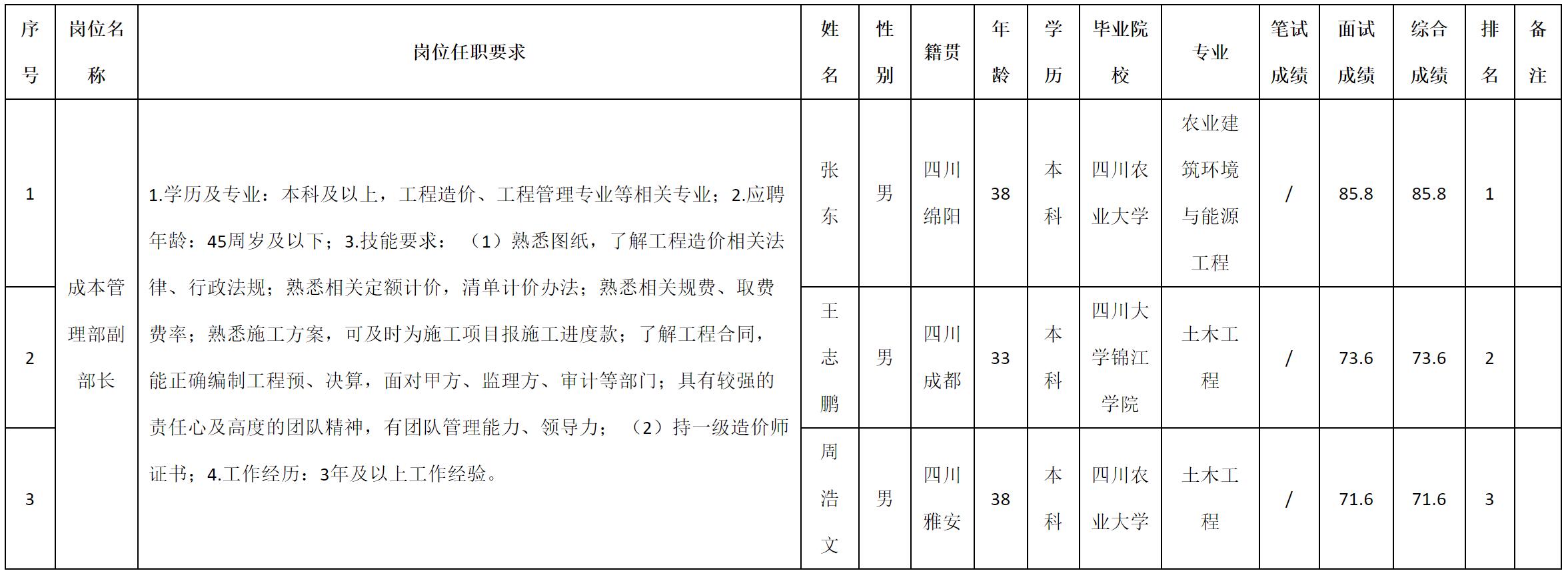 根據(jù)四川九洲建筑工程有限責(zé)任公司發(fā)布的招聘公告及招聘相關(guān)規(guī)定,現(xiàn)將測試成績予以公示。