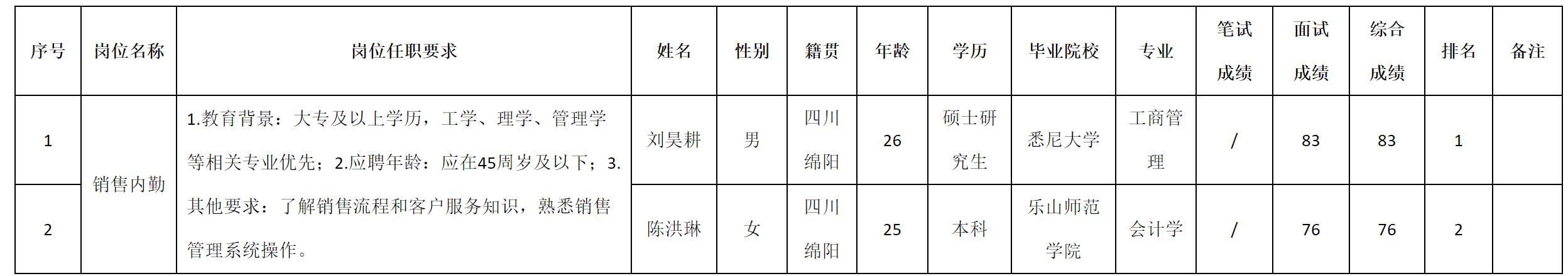 根據(jù)四川九州電子科技股份有限公司發(fā)布的招聘公告及招聘相關(guān)規(guī)定,現(xiàn)將測試成績予以公示。