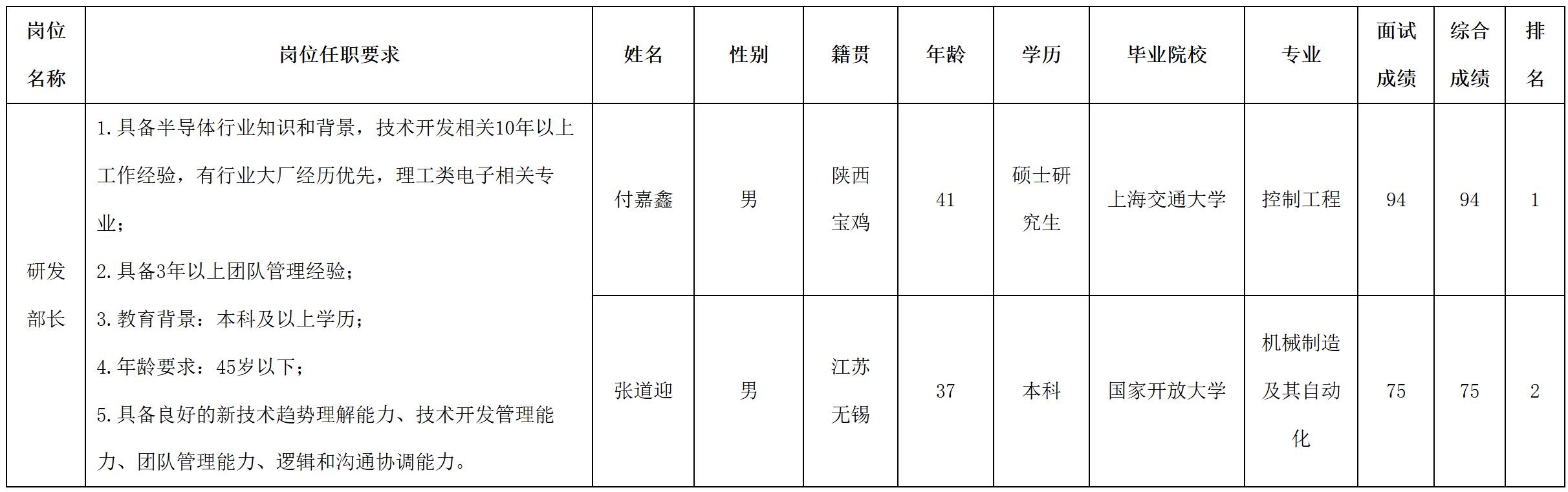 根據(jù)四川啟賽微電子有限公司發(fā)布的招聘公告及招聘相關(guān)規(guī)定,現(xiàn)將面試成績予以公示。