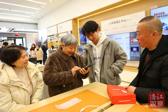 而另一邊,市民邱治蒙剛在小米之家下單了一款手機(jī),“過年之前我奶奶就說手機(jī)卡頓了,正好有這個(gè)補(bǔ)貼政策,我們就專門來逛商場給奶奶換手機(jī)。”原價(jià)1700多元的手機(jī),補(bǔ)貼之后到手1500多元。邱治蒙和奶奶十分滿意。