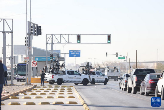 2月4日,墨西哥國民警衛(wèi)隊員抵達(dá)墨西哥北部奇瓦瓦州華雷斯市。新華社記者 李夢馨 攝