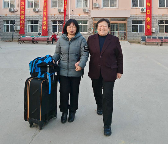 1月25日,舒云娣(左)出發(fā)前往北京,開(kāi)啟“反向”打工之旅。(受訪者供圖)