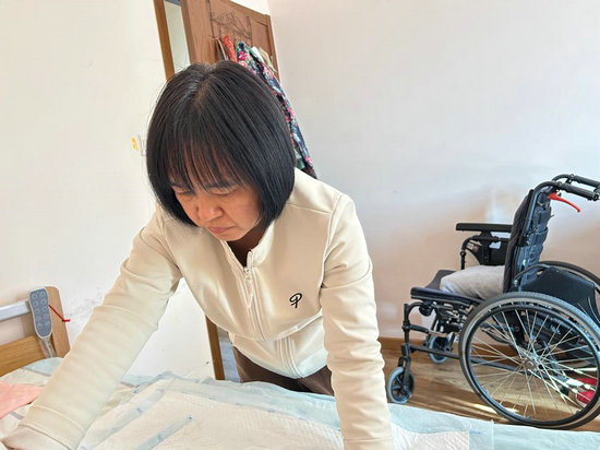 舒云娣為老人整理床鋪。(受訪者供圖)