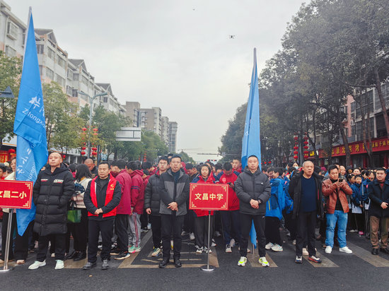 清晨,崇文廣場上人潮涌動,文昌中學(xué)師生組成的方陣整齊列隊,成為現(xiàn)場一道亮麗的風(fēng)景線。隨著活動發(fā)令聲響起,師生們從廣場出發(fā),沿縣城主干道徒步至長卿山。沿途歡聲笑語不斷,師生們或高擎校旗,或三五結(jié)伴,共同感受傳統(tǒng)文化與現(xiàn)代活力的交融。