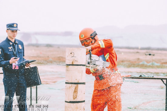 當天上午,隨著口令響起,活動準時開始。在考驗隊員們體能和耐力的3公里負重越野比賽中,參賽人員向著終點全力沖刺;在油鋸斷木項目較量中,隊員們手持油鋸,作業(yè)“穩(wěn)”“準”“快”;在以水滅火項目科目中,大家分工明確,精準地將水柱射向肆虐的火焰……