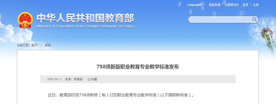 記者2月11日從教育部獲悉,教育部近日印發(fā)758項新修(制)訂的職業(yè)教育專業(yè)教學(xué)標(biāo)準(zhǔn),覆蓋《職業(yè)教育專業(yè)目錄》1434個專業(yè)的52.9%,涉及19個專業(yè)大類、90個專業(yè)類。其中,中職標(biāo)準(zhǔn)223項,高職??茦?biāo)準(zhǔn)471項,職業(yè)本科標(biāo)準(zhǔn)64項。