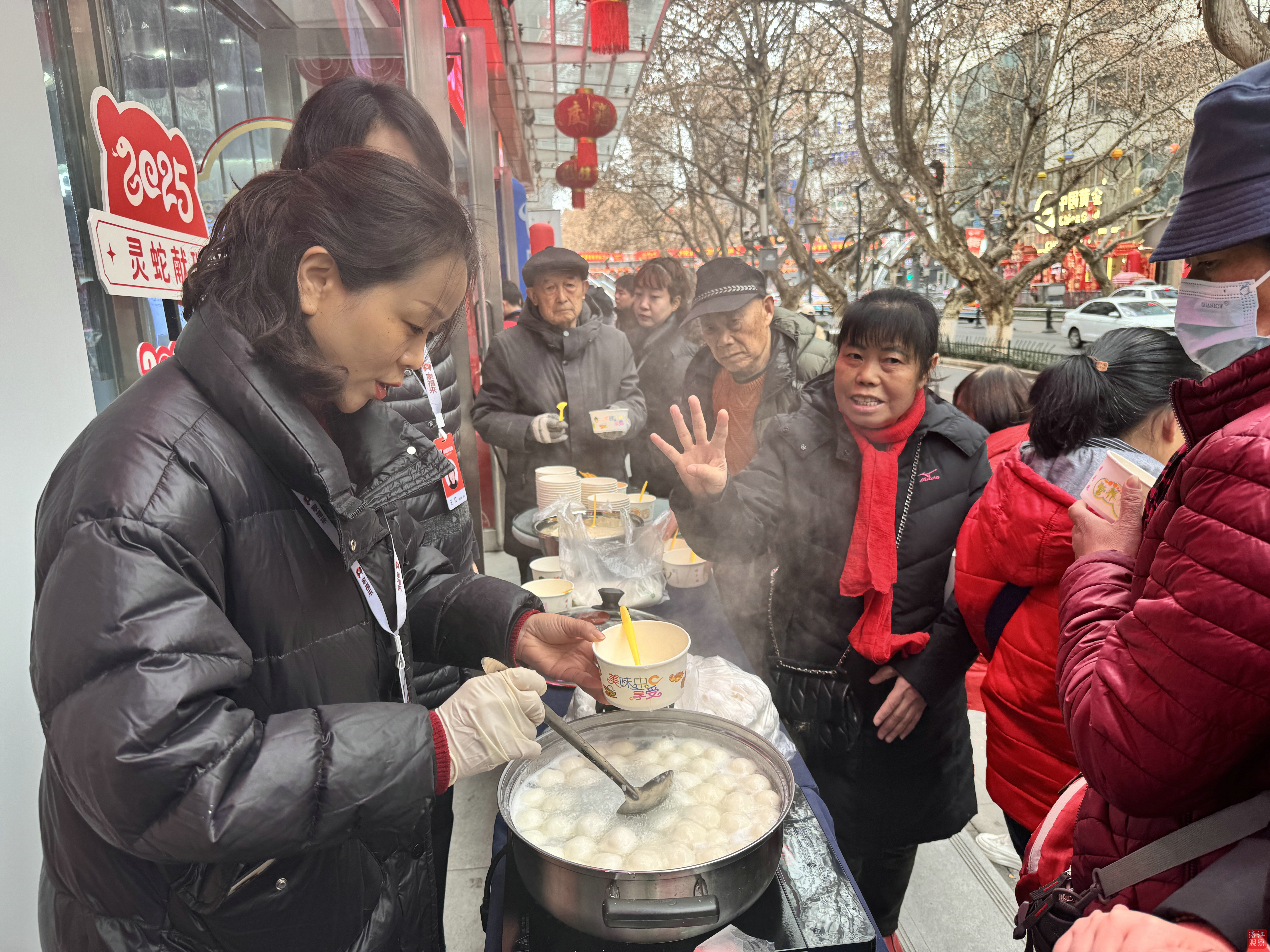 “吃湯圓啦!”“我要4個,巳巳如意。”2月12日,家福來臨園口旗艦店推出了鬧元宵活動,消費者在購物的同時,還可以來一碗熱氣騰騰的湯圓,更有猜燈謎領禮品活動。
