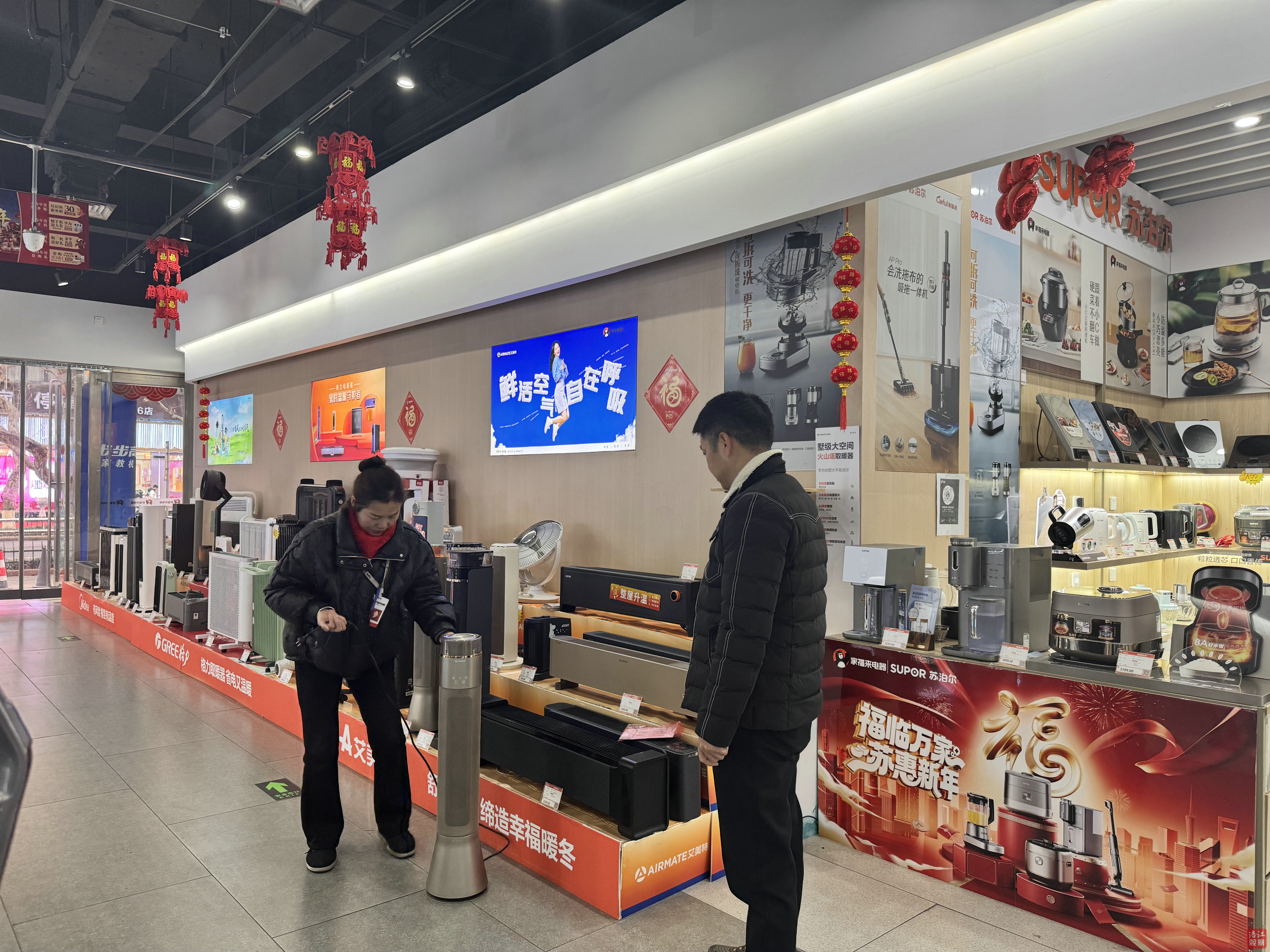 不僅有豐富的鬧元宵活動,門店也是抓住“年尾巴”,推出優(yōu)惠福利,借“元宵經濟”讓消費市場持續(xù)升溫。“購手機、家電享政企雙補,最高達35%;購買電視、冰箱、洗衣機、冰柜、抽油煙機、熱水器等送一年延長保修。”王紅介紹,同時,門店針對套購也有買贈的活動。
