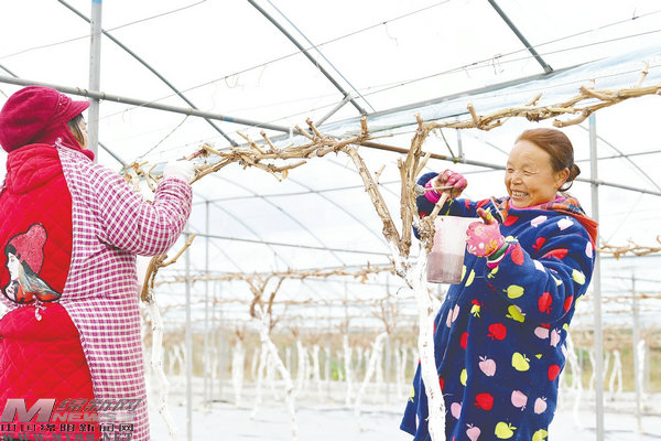 2月7日,在涪城區(qū)歐公大道兩側的連片果園里,處處是農(nóng)戶們忙碌的身影,有的在大棚內(nèi)給葡萄枝干抹藥防蟲害,有的收割青菜、平整土地,目之所及,一派熱火朝天的勞作景象。(記者 王勇 攝)