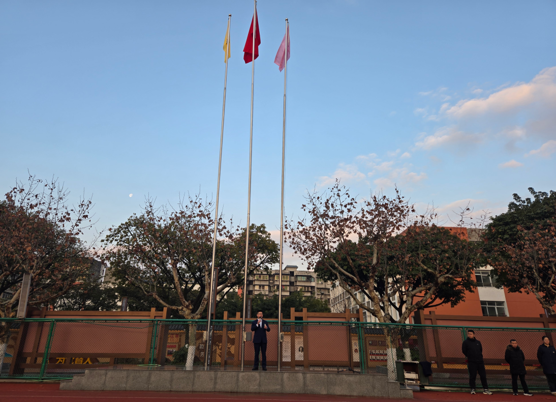 隨著激昂的國(guó)歌聲劃破清晨的寧?kù)o,鮮艷的五星紅旗在護(hù)旗手的護(hù)送下,緩緩升起,如同初升的太陽(yáng),照亮了每一個(gè)人的心田。全校師生目光如炬,神情肅穆。那專注的眼神中,既有對(duì)國(guó)旗的無(wú)限敬仰,也有對(duì)新學(xué)期的無(wú)限期待。