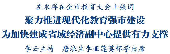 左永祥指出,要堅(jiān)持和加強(qiáng)黨對(duì)教育的全面領(lǐng)導(dǎo),為現(xiàn)代化教育強(qiáng)市建設(shè)提供堅(jiān)強(qiáng)保證。要堅(jiān)持教育優(yōu)先發(fā)展,壓緊壓實(shí)各方責(zé)任,不斷健全完善黨委統(tǒng)一領(lǐng)導(dǎo)、黨政齊抓共管、部門各負(fù)其責(zé)的教育領(lǐng)導(dǎo)體制,充分匯聚推進(jìn)教育強(qiáng)市建設(shè)的強(qiáng)大合力。要加快建設(shè)良好教育生態(tài),引導(dǎo)樹立正確的價(jià)值觀、成才觀、教育觀,加強(qiáng)對(duì)科學(xué)教育理念和改革政策的宣傳解讀力度,推動(dòng)形成定位清晰、機(jī)制健全、聯(lián)動(dòng)緊密、科學(xué)高效的學(xué)校家庭社會(huì)協(xié)同育人機(jī)制。要堅(jiān)決守住安全穩(wěn)定底線,圍繞平安校園建設(shè),合力做好校園矛盾糾紛排查化解,加強(qiáng)學(xué)生欺凌和暴力行為防范處置,細(xì)致做好校園及周邊安全、食品安全等工作,全力維護(hù)師生安全和校園穩(wěn)定。全市廣大教師和教育工作者要牢記為黨育人、為國育才的初心使命,大力弘揚(yáng)教育家精神,既精通專業(yè)知識(shí)、做好“經(jīng)師”,又涵養(yǎng)德行、當(dāng)好“人師”,努力培養(yǎng)更多德智體美勞全面發(fā)展的社會(huì)主義建設(shè)者和接班人。