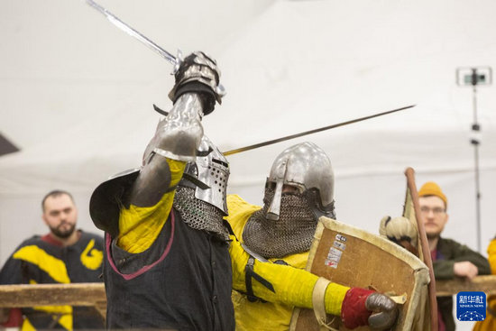 2月23日,演員們在俄羅斯圣彼得堡軍事歷史主題互動展覽上重現(xiàn)戰(zhàn)斗場景。
