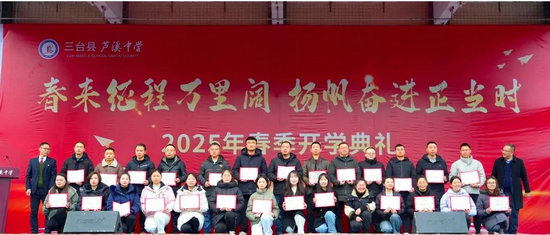 綿陽新聞網(wǎng)訊 近日,三臺縣蘆溪中學(xué)、蘆溪二中全體師生齊聚一堂,隆重舉行了以“春來征程萬里闊,揚帆奮進正當時”為主題的2025年春季學(xué)期開學(xué)典禮。