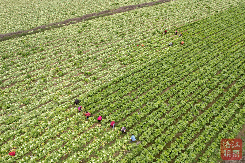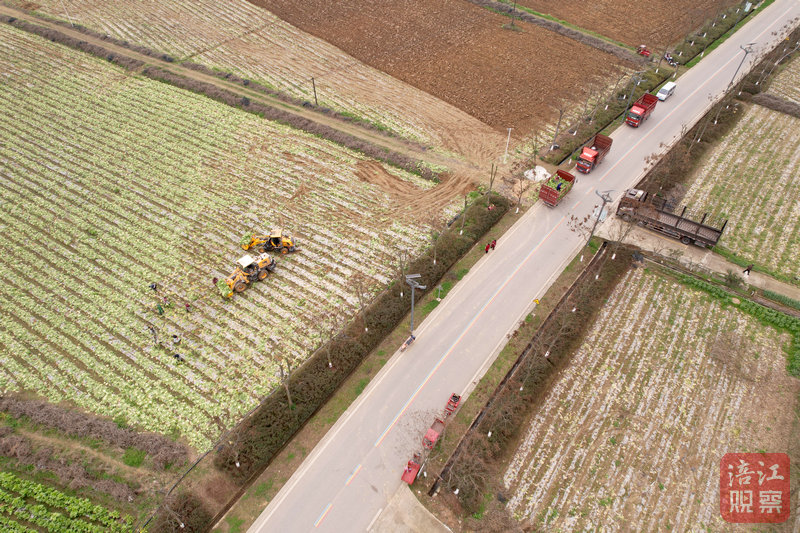 在芙蓉溪畔的勝黎村,20多位農民正在搶收近百畝地的青菜。2臺裝載機及時將砍好的青菜裝進路邊的大貨車,1臺大型農耕機在被清空的菜地里來回穿梭……