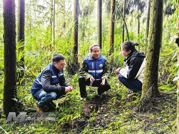 連續(xù)多日的陰雨天氣讓山路泥濘不堪,車輛行至高川村塘房溝泥石流地質(zhì)災(zāi)害點(diǎn)附近,只能停在壩下。記者跟隨師徒倆往壩區(qū)中心行進(jìn),山路上雜草叢生,馬銀國一邊走一邊用手撥開濕漉漉的樹枝,目光始終盯著地面。