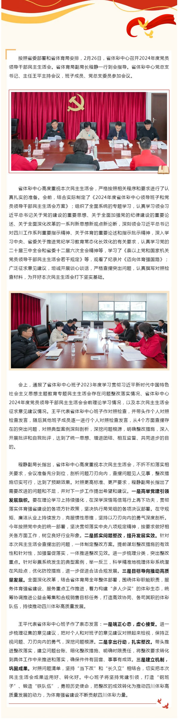 省體彩中心召開2024年度黨員領(lǐng)導(dǎo)干部民主生活會