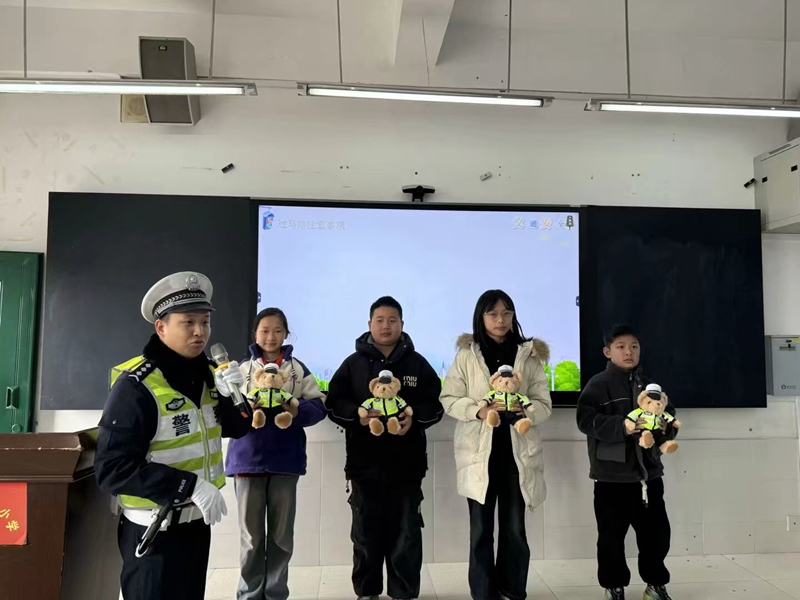 交警中隊警官走進課堂,向孩子們傳授了豐富的道路交通規(guī)則知識,為了增強趣味性和記憶點,通過答題獎勵有交通安全標語的小熊玩偶,在輕松愉快的氛圍中學習到了正確的行走方式 、過馬路時應注意的案例事項等重要信息,多媒體屏幕上播放著生動形象的教學視頻,進一步加深了孩子們的印象。