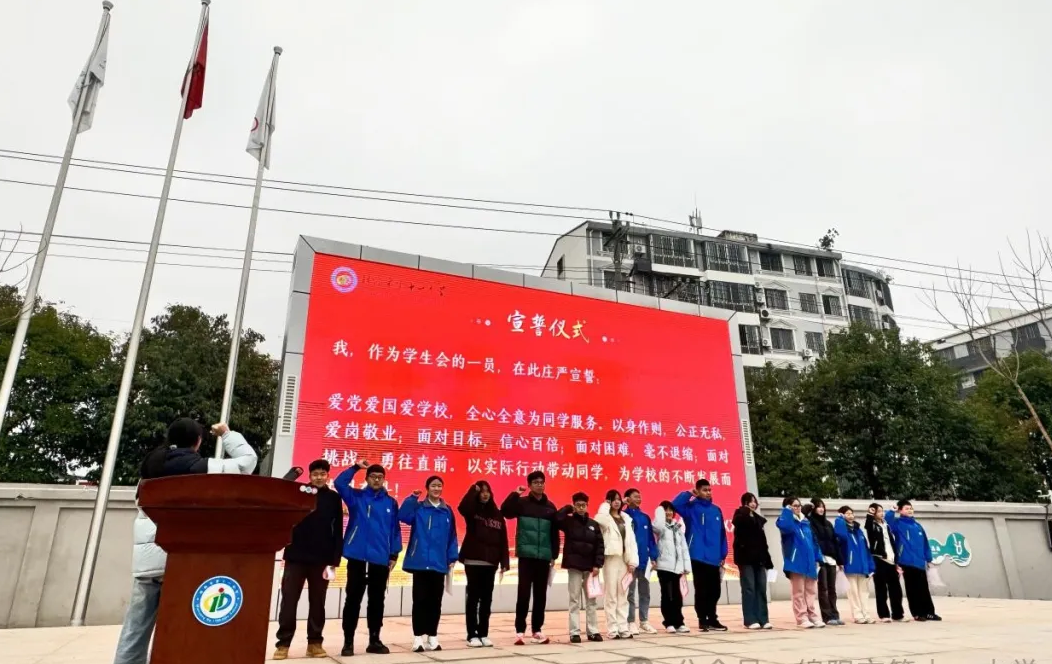 隨后,學(xué)生會(huì)主席杜周玉芹帶領(lǐng)全體成員莊嚴(yán)宣誓,表達(dá)了全心全意為同學(xué)服務(wù)、積極推動(dòng)校園文化建設(shè)和思政教育的堅(jiān)定決心。