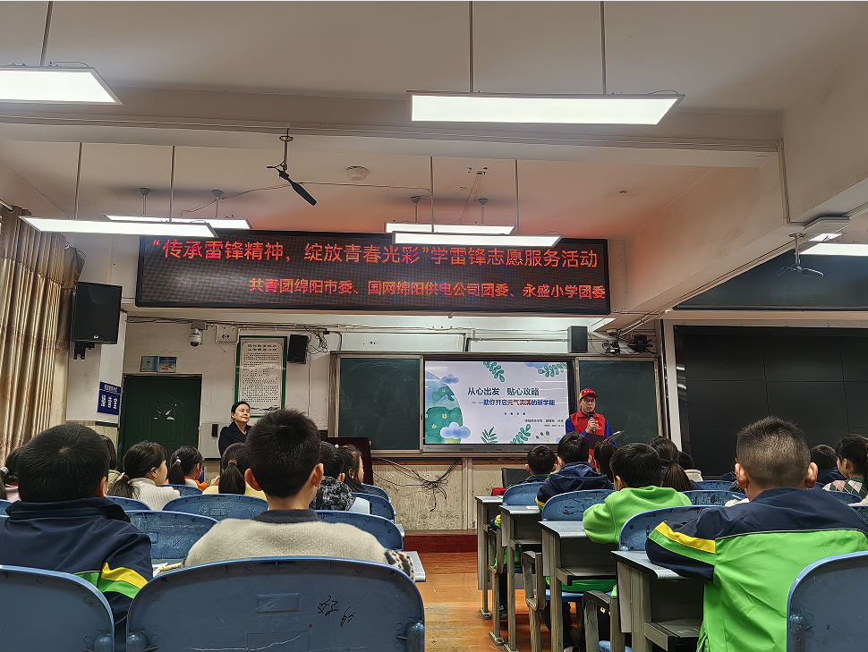 3月3日下午,由共青團(tuán)綿陽(yáng)市委主辦、國(guó)網(wǎng)綿陽(yáng)供電公司承辦的“傳承雷鋒精神,綻放青春光彩”為主題的2025年學(xué)雷鋒志愿服務(wù)活動(dòng)在川電留守學(xué)生之家——安州區(qū)永盛小學(xué)舉行。