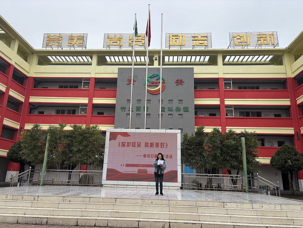 在周一的升旗儀式上,六二中隊(duì)的謝媛媛老師進(jìn)行了國(guó)旗下講話,正式拉開了本次愛耳日活動(dòng)的序幕。他向全體師生詳細(xì)介紹了愛耳日的由來和意義,用生動(dòng)的語(yǔ)言講述了耳朵的構(gòu)造和功能,強(qiáng)調(diào)了耳朵對(duì)我們?nèi)粘I睢W(xué)習(xí)和交流的重要性。同時(shí),還列舉了一些生活中常見的傷耳行為,呼吁同學(xué)們從自身做起,愛護(hù)自己的耳朵,養(yǎng)成良好的用耳習(xí)慣。