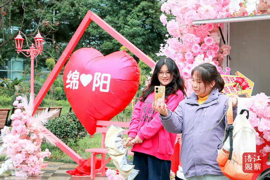 打卡車通體繪制3D立體花墻,后視鏡上垂落的流蘇綴滿鈴蘭花朵。這輛由綿陽市商務(wù)局打造的“她與綿陽有個約惠”快閃車,每到一處都會引發(fā)圍觀。“我們特意在車身周圍設(shè)計了打卡區(qū),每位女性經(jīng)過時都能留下嵌在花海中的紀(jì)念照片。”活動相關(guān)負(fù)責(zé)人介紹。