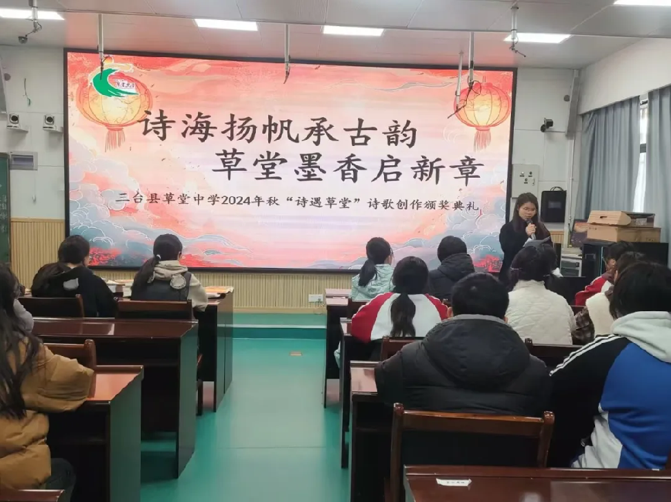 2月28日,三臺縣草堂中學(xué)在學(xué)校錄播室舉行了以“詩海揚帆承古韻,草堂墨香啟新章”為主題的2025年春頒獎典禮。