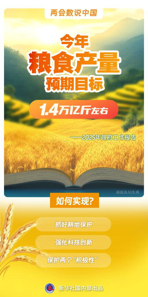 這是我國在糧食產(chǎn)量連續(xù)10年穩(wěn)定在1.3萬億斤以上、2024年突破1.4萬億斤新臺階后,首次在政府工作報告中對糧食產(chǎn)量提出1.4萬億斤左右的新目標。