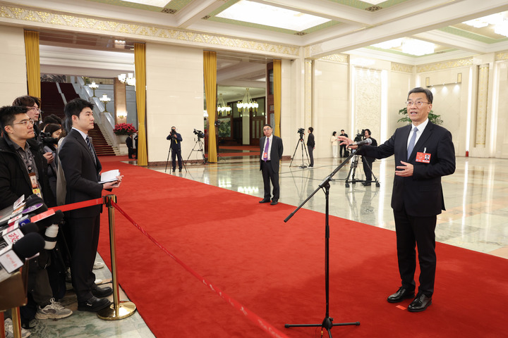 3月5日,第十四屆全國人民代表大會第三次會議首場“部長通道”集中采訪活動在北京人民大會堂舉行。這是教育部部長懷進鵬接受媒體采訪。新華社記者 呂帥 攝