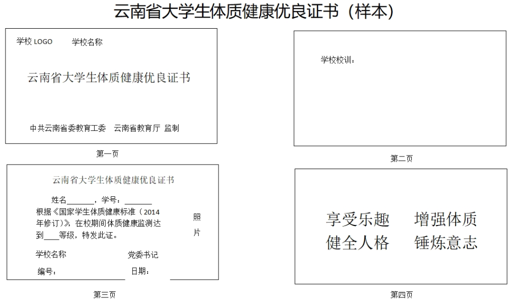 據(jù)介紹,云南省大學(xué)生體質(zhì)健康優(yōu)良證書由省教育廳統(tǒng)一模板,各高校統(tǒng)一制作發(fā)放,證書上還要求加蓋學(xué)校公章和校黨委書記印章。