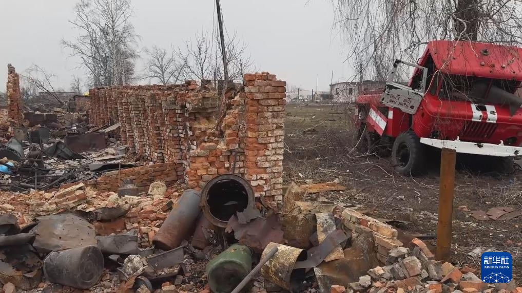 這張俄羅斯國防部3月13日發(fā)布的視頻截圖顯示的是庫爾斯克州一個定居點(diǎn)被損壞的建筑。新華社發(fā)(俄羅斯國防部供圖)