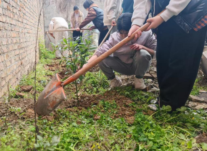 該校青少年朋友們互助組合、牽手你我,走上街頭、走進(jìn)村社:清雜草、鏟培土、“您”飲水。彰顯新時(shí)代“天人合一、萬(wàn)物共育”的理念。