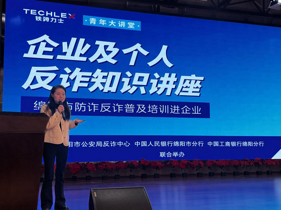 綿陽新聞網(wǎng)訊 近日,工行綿陽分行聯(lián)合人行綿陽市分行、綿陽市公安局反詐中心赴該行優(yōu)質(zhì)企業(yè)客戶鐵騎力士集團(tuán)開展了以“企業(yè)及個(gè)人反詐知識(shí)講座——防詐反詐普及培訓(xùn)進(jìn)企業(yè)”為主題的反詐宣講活動(dòng)。
