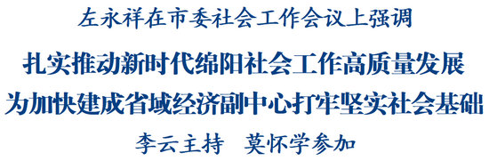 綿陽新聞網(wǎng)訊 3月18日,市委社會(huì)工作會(huì)議召開,副省長、市委書記左永祥出席會(huì)議并講話。他強(qiáng)調(diào),要深入學(xué)習(xí)貫徹習(xí)近平總書記關(guān)于社會(huì)工作的重要論述和重要指示精神,全面落實(shí)中央和省委社會(huì)工作會(huì)議部署要求,堅(jiān)定不移走中國特色社會(huì)主義社會(huì)治理之路,不斷夯實(shí)基層治理基礎(chǔ),扎實(shí)推動(dòng)新時(shí)代綿陽社會(huì)工作高質(zhì)量發(fā)展,為加快建成省域經(jīng)濟(jì)副中心打牢堅(jiān)實(shí)社會(huì)基礎(chǔ)。