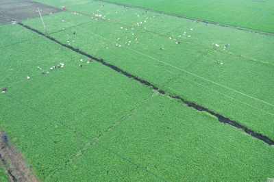 3月6日,在安州區(qū)河清鎮(zhèn)寶華村,村民們正在采摘青菜。(記者 安崢 攝)