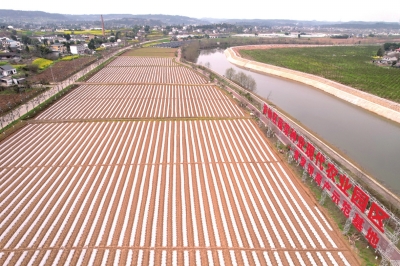 3月11日,記者在游仙區(qū)新橋鎮(zhèn)看到,田間色塊黃綠交織,壟壟地膜宛如琴弦?! ?記者 王勇 攝)